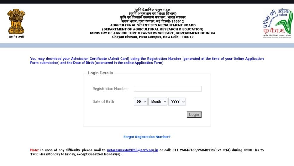 The Agricultural Scientists Recruitment Board (ASRB) has released the ASRB NET/ SMS/ STO/ ARS Admit Card 2025 for the upcoming recruitment exams. Candidates who applied for Subject Matter Specialist (SMS), Senior Technical Officer (STO), Agricultural Research Service (ARS) and National Eligibility Test (NET) can now download their admit cards from the official website.