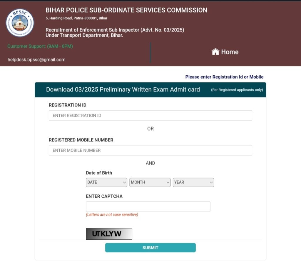 The Admit Card is a mandatory document to appear for the Bihar Police Enforcement SI Examination 2025. It not only allows entry into the exam hall but also verifies the identity of the candidate. Without the admit card, no candidate will be allowed to enter the exam center.