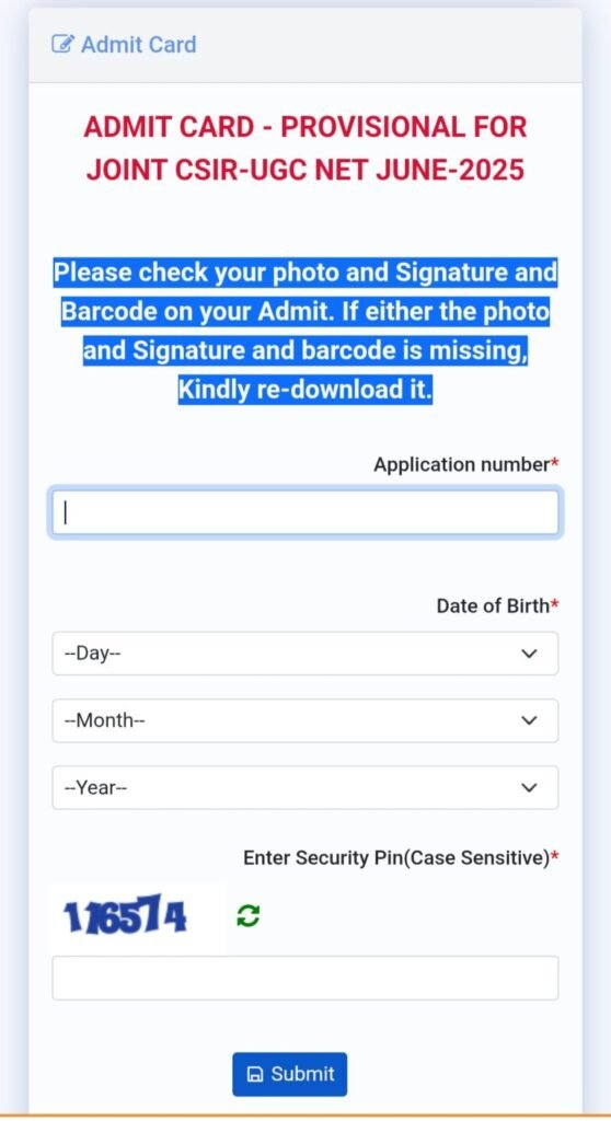 - Click on the “Admit Card – CSIR NET June 2025” link.